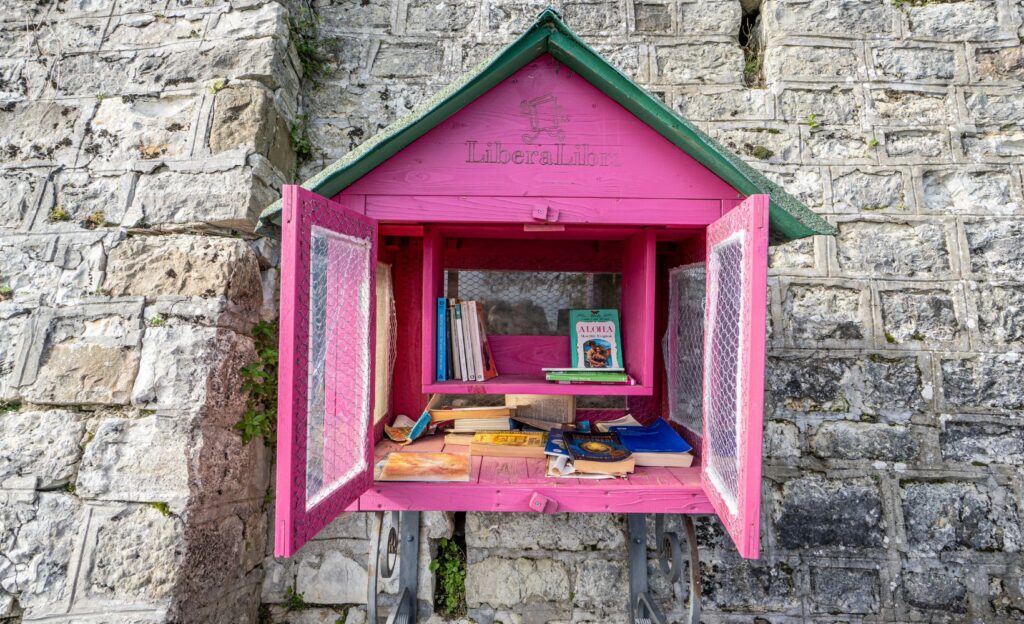 Oltre agli itinerari naturalistici e storici, il borgo si distingue per il suo impegno culturale, guadagnandosi il titolo di “borgo della lettura”. La passeggiata Carlo Bollini, che circonda le antiche mura, è arricchita da postazioni di bookcrossing. Le caratteristiche casette fucsia, affiancate da panchine dello stesso colore, invitano residenti e visitatori a scambiare libri o a concedersi una pausa di lettura immersi nella tranquillità di un paesaggio unico.
