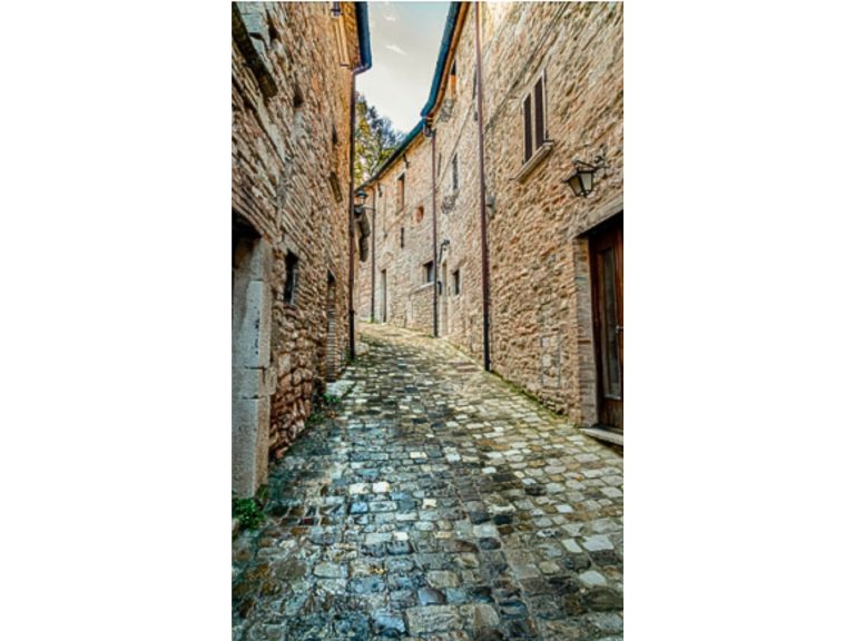 Varcata la Porta, la strada si divide in due parti, una di queste conduce alla Porta di Levante, l’altra alla scalinata di Palazzo Brancaleoni, tramite un percorso ad anelli.