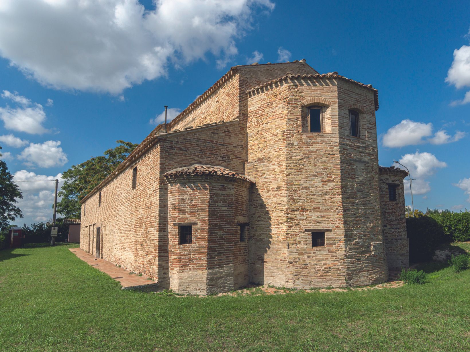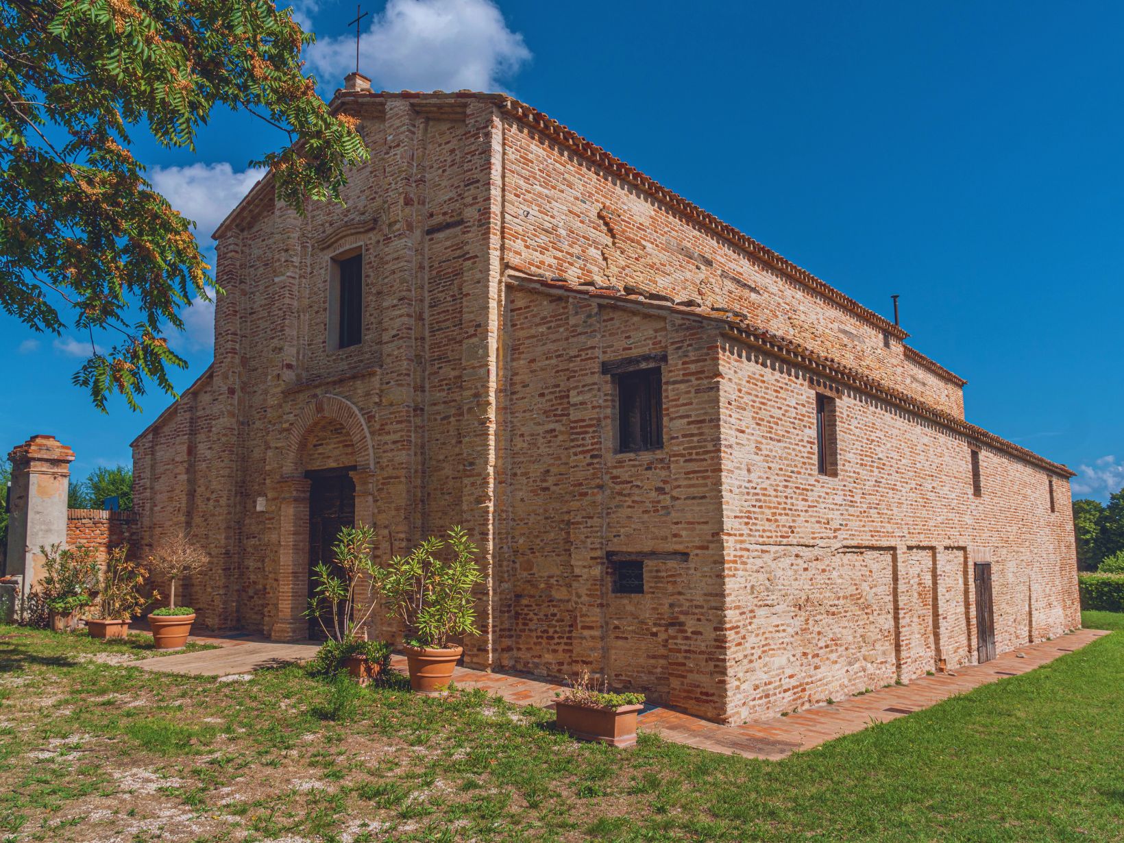 Nel mezzo del verde della campagna mondolfese, che vanta il riconoscimento di spiga verde FEE, sulla riva sinistra del fiume Cesano, costruita con materiali di recupero di epoca romana, sorge l’Abbazia di San Gervasio di Bulgaria, una delle più antiche chiese della Diocesi di Senigallia, se non una delle più enigmatiche, che offre, a quanti varchino la soglia, uno scrigno di tesori e segreti misteriosi. Risalente al secolo V-VI, la struttura sorge nel mezzo di un’area archeologica, in una zona occupata dai Bulgari, una popolazione barbara che strinse alleanza con i Longobardi. L’edificazione dell’Abbazia a ridosso della Strada Provinciale 424 della Valcesano non desta stupore e questo perché, un tempo, le chiese e i templi venivano appositamente innalzati nei pressi delle strade di maggior afflusso, proprio affinché il Verbo si diffondesse in maniera più agevole e capillare. Tra l’altro, in questo territorio, è altamente probabile che si trovasse la stazione di posta di Ad Pirum Filumeni, così come riportato nella Tabula Peutingeriana, luogo di scambi commerciali e non solo.