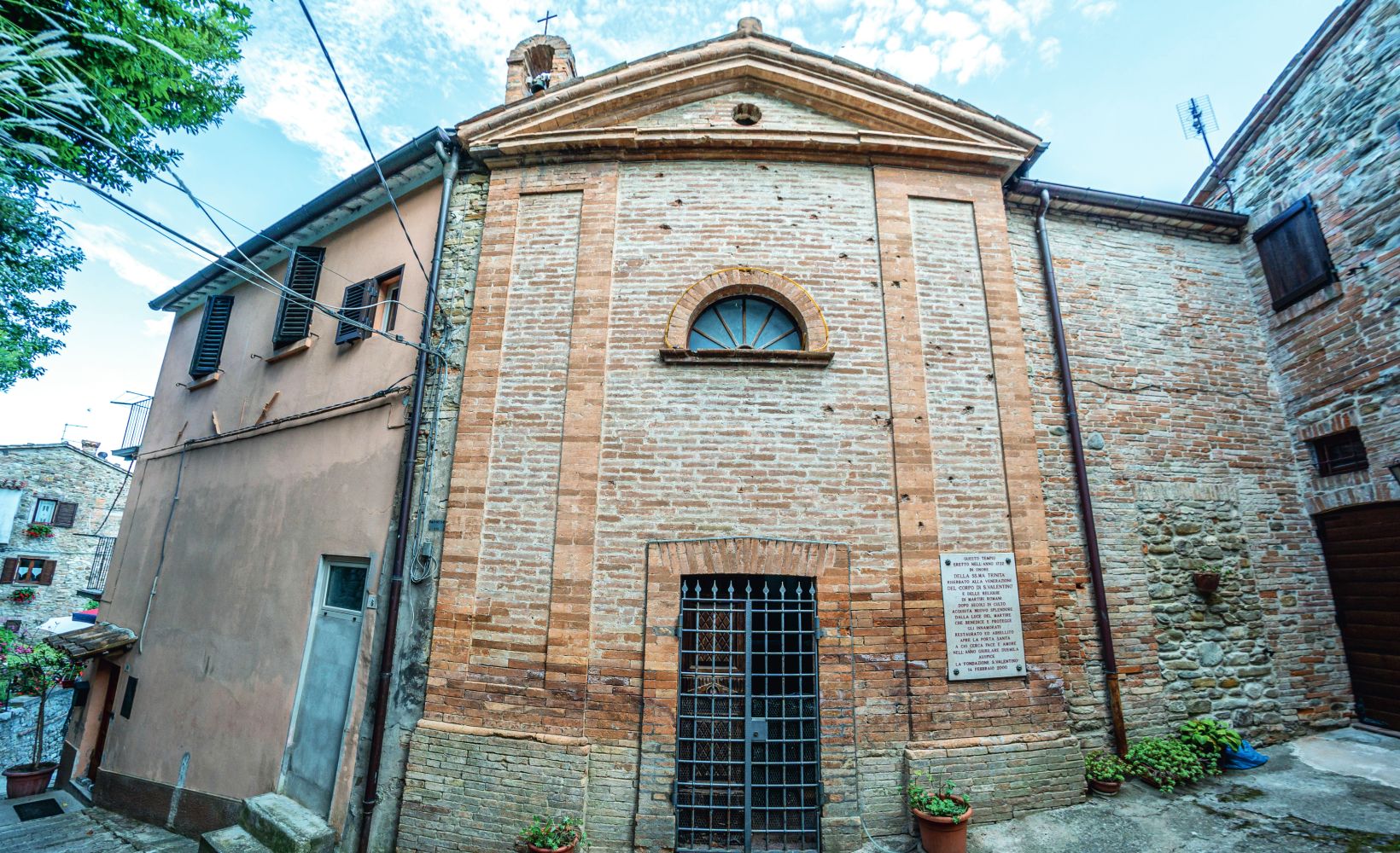 L’Oratorio della Santissima Trinità di Sassocorvaro è un edificio che tende a confondersi tra gli altri che lo fiancheggiano. Percorrendo la stretta via dove si affaccia, si potrebbe non notarlo.