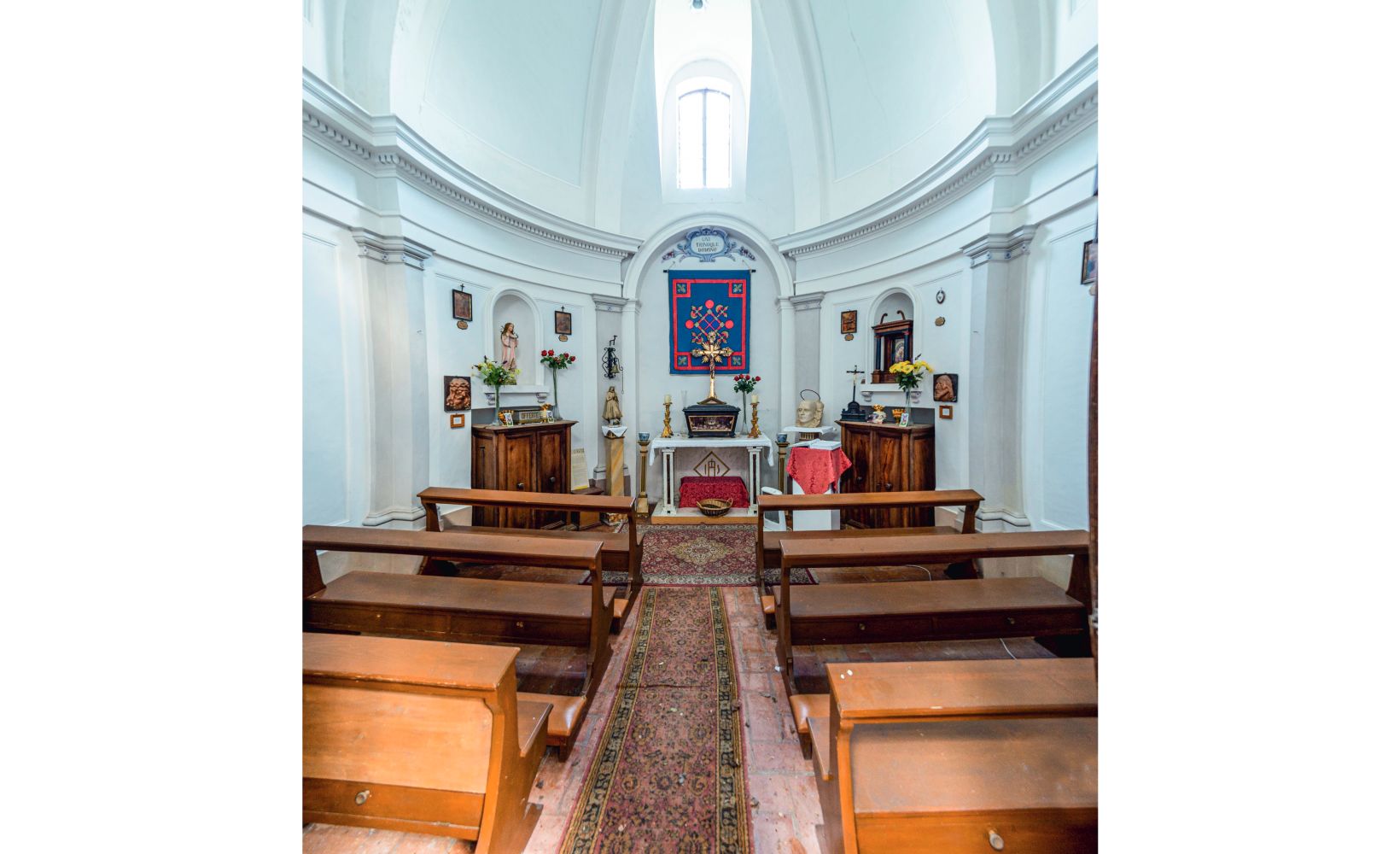 Nemmeno l’interno sembra avere particolarità tali da attirare lo sguardo. Eppure, una sorpresa attende il visitatore che decida di entrarvi.
