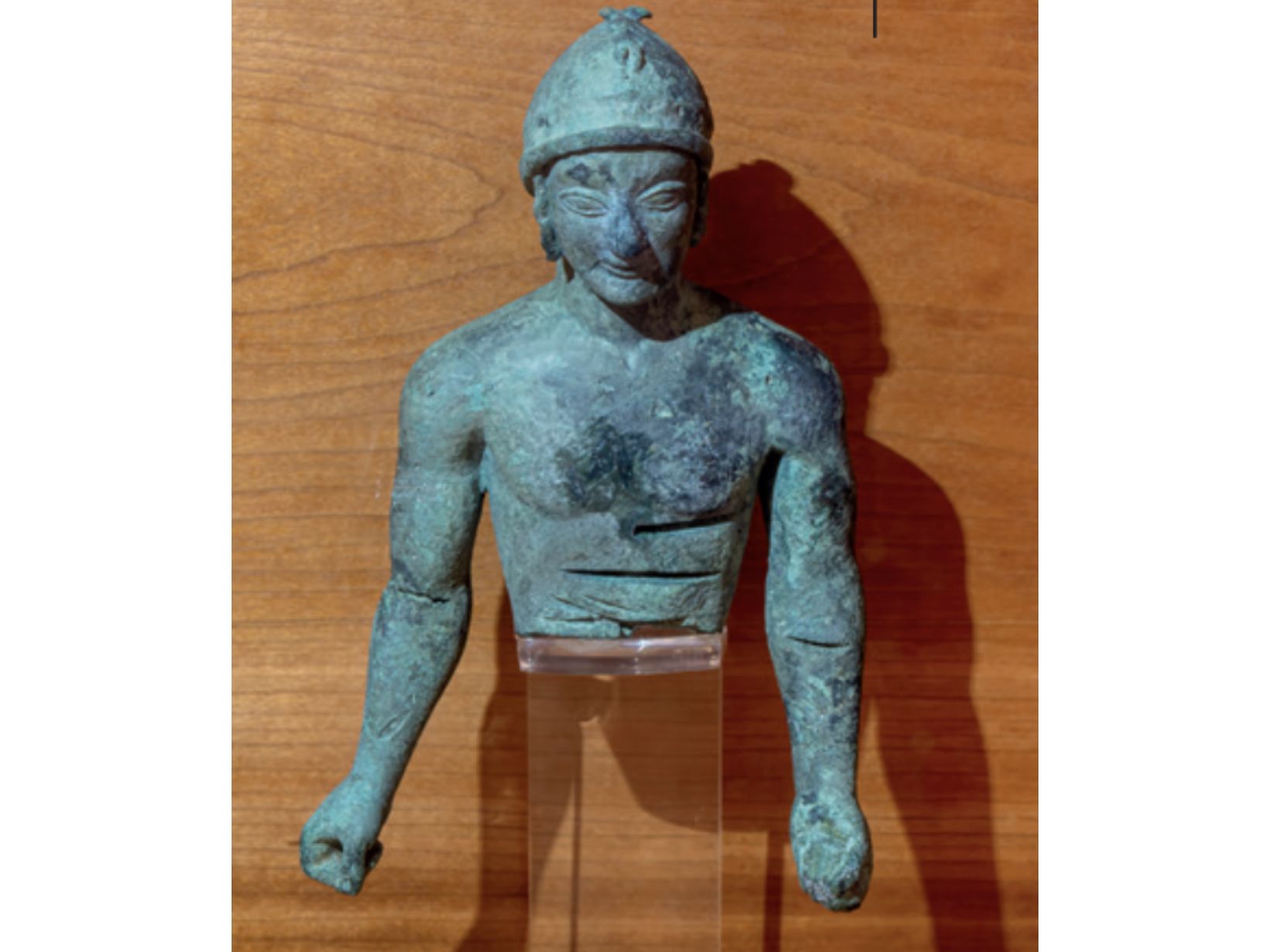 I due pezzi principali esposti sono un miliario della Via Flaminia, antesignano dei nostri segnali stradali, su cui è indicata la distanza, perfettamente calcolata, tra Roma e Cantiano, e il Bronzetto. Quest’ultimo è una piccola statua quasi oracolare nel suo modo di svelarci, coi suoi tratti, l’unicità che contraddistingue Cantiano. L’elmo piceno, il volto dagli inconfondibili lineamenti etruschi e il corpo robusto caratteristico dei bronzetti umbri, sono la prova che Cantiano fu sempre terra di confine, nodo che univa Etruria e Piceno, Marche e Umbria.