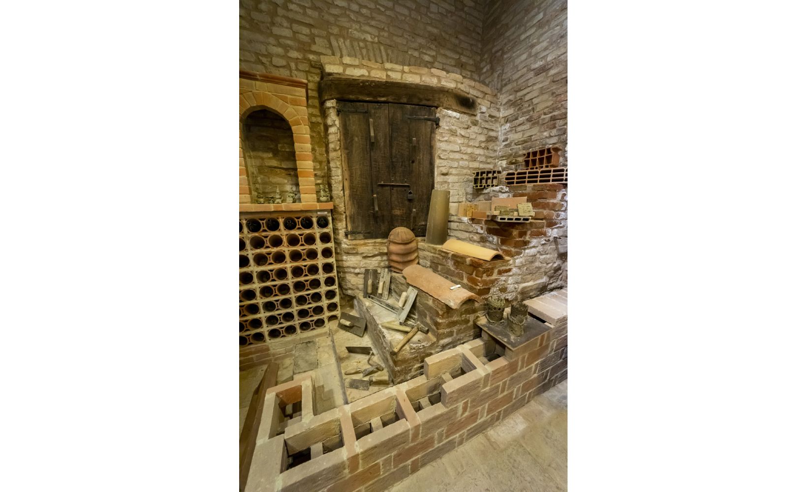 Nella prima sala del museo l’attenzione è rivolta alla produzione del mattone, un manufatto frutto della terra, del fuoco, dell’acqua e del sapere dell’uomo, di cui sono esposti vari esempi, oltre a un’ampia documentazione storica e fotografica dell’antica Fornace.