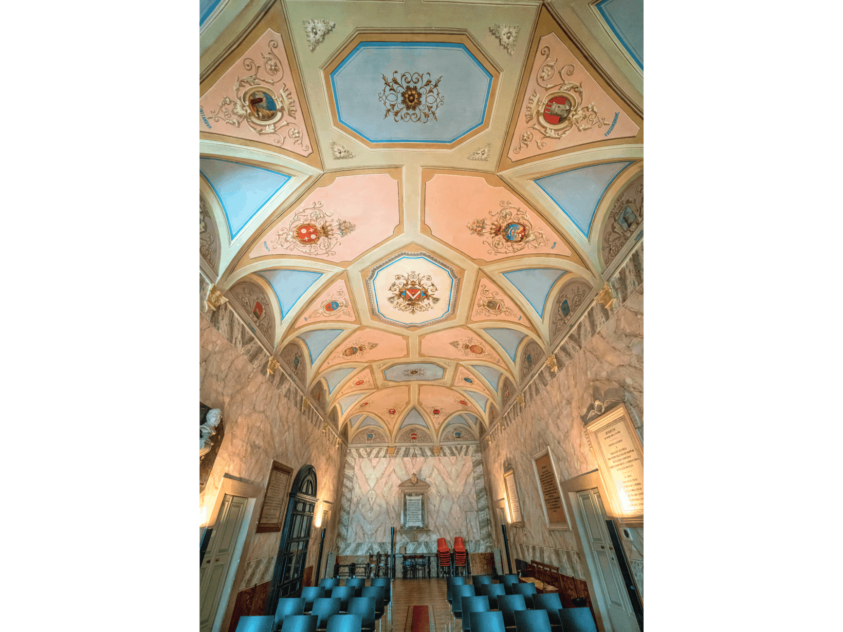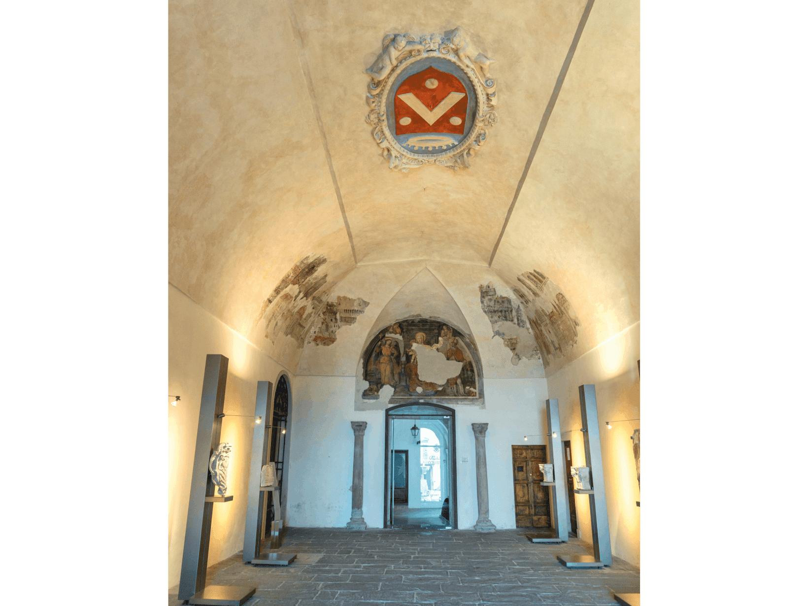 Gli spazi del palazzo ospitano anche il Salone degli stemmi, decorato nel 1889 per commemorare i 600 anni della riedificazione di Cagli con i blasoni di tutte le città che contribuirono alla ricostruzione.