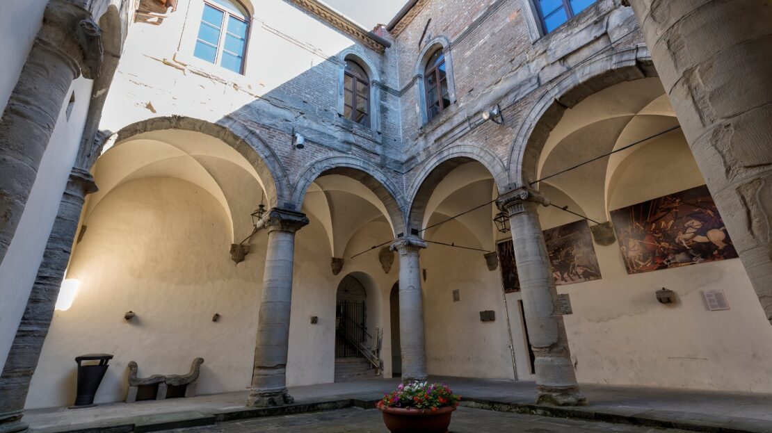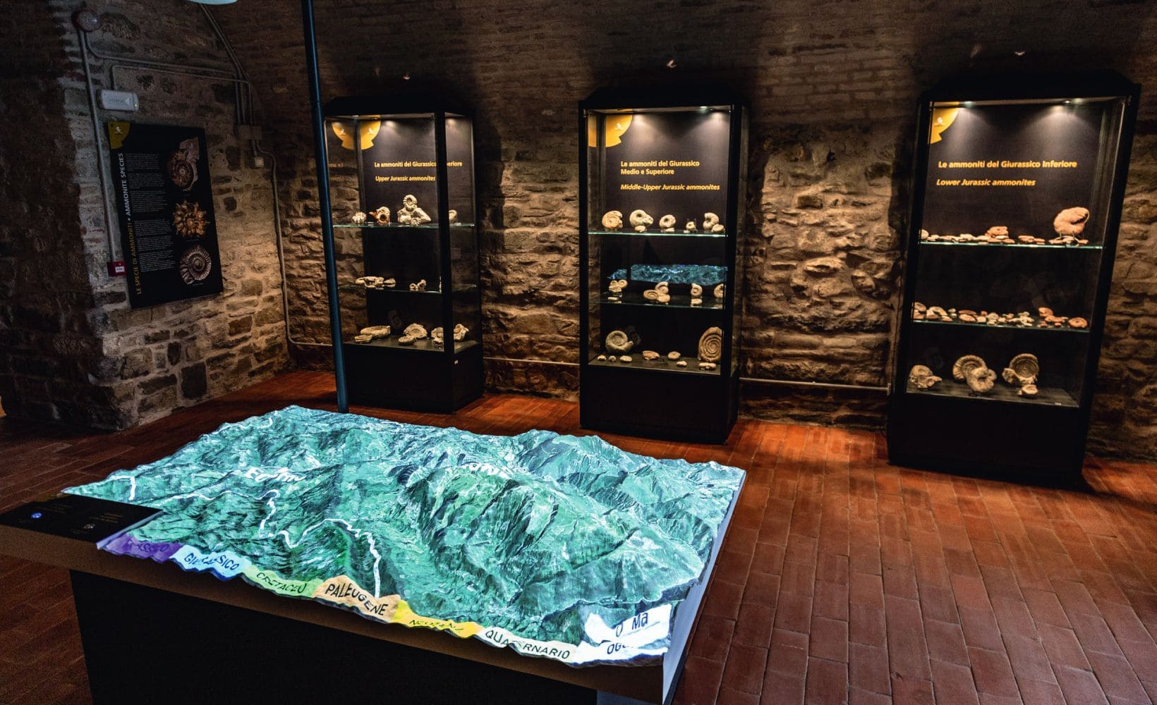Anche se non è inverosimile pensare che nel luogo vi fosse una preesistenza medievale, i lavori di Palazzo Ubaldini iniziarono con Ottaviano Ubaldini (Gubbio 1422 – Cagli 1498) nel 1477. In seguito alla sua morte, sopraggiunta nel 1498, non si ebbero più notizie del palazzo fino alla fine del secolo successivo, quando Gentile II Ubaldini (Apecchio + 1543), conte di Apecchio, decise di ristrutturarlo in quanto versava in condizioni di abbandono. I conti di Apecchio, infatti, abitavano frequentemente nel loro palazzo a Gubbio a causa del fatto che non ne possedevano uno abitabile nel loro territorio. Il luogo in cui sorge l’edificio attualmente comprendeva le due abitazioni Ubaldini, rispettivamente quelle dei rami di Montevicino e di Montefiore. Dai documenti del tempo possiamo risalire alla loro collocazione originaria in quanto sappiamo che il palazzo dei conti di Montevicino si trovava nella parte sinistra, accanto alla pieve, mentre quella dei Montefiore era nella parte destra, accanto alla Porta del Castello (probabilmente l’attuale uscita di sicurezza del Museo dei Fossili). Il conte Gentile decise di unificare le due abitazioni facendone un solo palazzo e concluse i lavori nel 1588. A testimonianza di questo intervento rimangono le sale ipogee che ospitano il Museo dei Fossili, allora adibite a sale di servizio in cui la servitù svolgeva le mansioni della vita quotidiana.