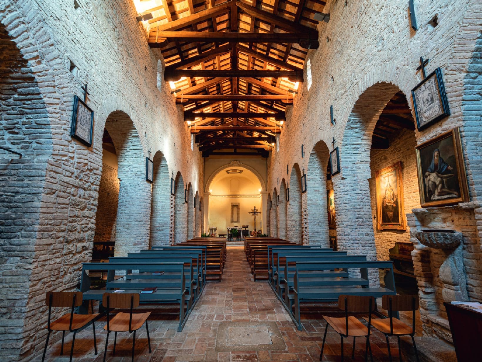 Le sue navate, scandite da colonne solenni, hanno accolto nei secoli i fedeli e una statua di San Sebastiano del XV secolo, testimone marmorea di devozione e arte, ora velata dai teli dei restauratori. Questo antico baluardo del sacro affonda le sue radici nell’alba del Cristianesimo, quando le voci del V e VI secolo risuonavano tra le sue mura, elevandosi sopra le ceneri di un’era travagliata da invasioni. Il XVI secolo vide la Pieve trasformarsi, con l’abside romanico che cedeva il passo a forme più ampie e finestre che si schiudevano a nuove luci.