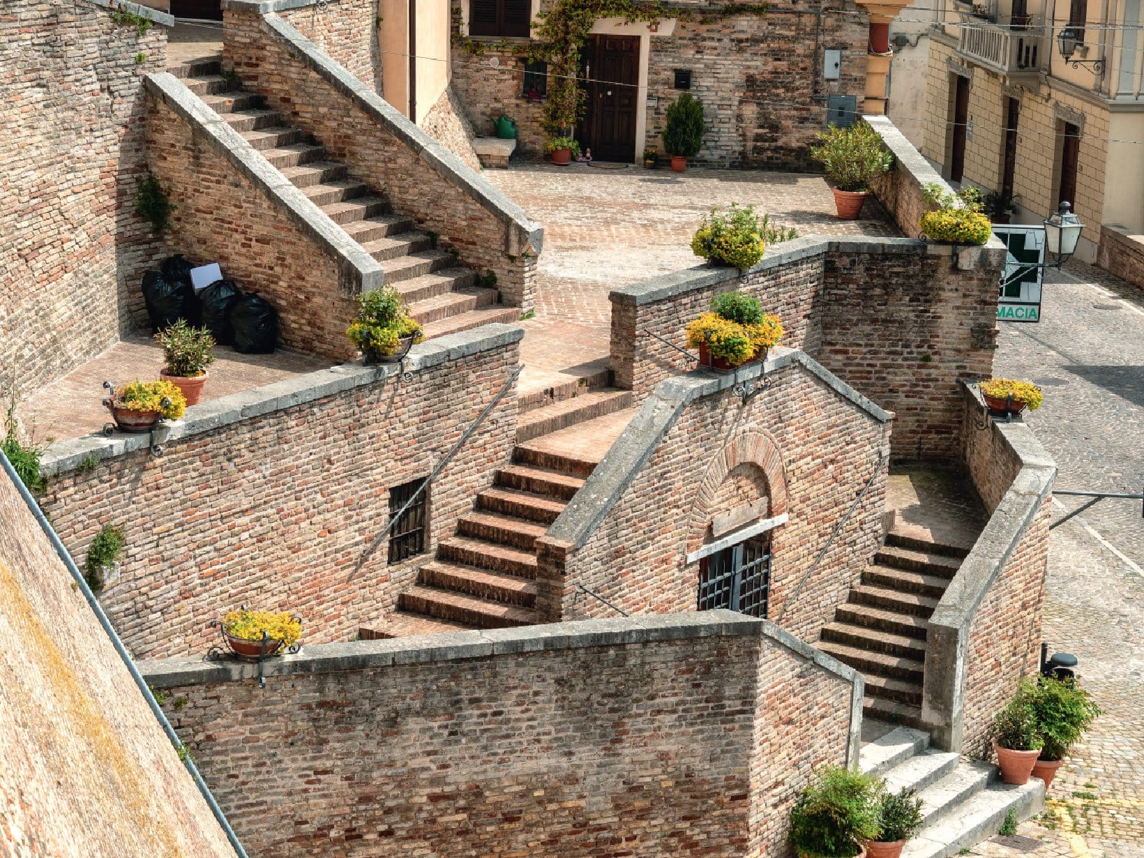 Rampe di ripide scale sono la porta d’accesso al centro di ogni paese, preludio e ribalta di quello che ci attende.
