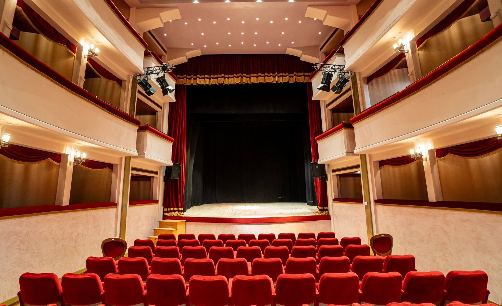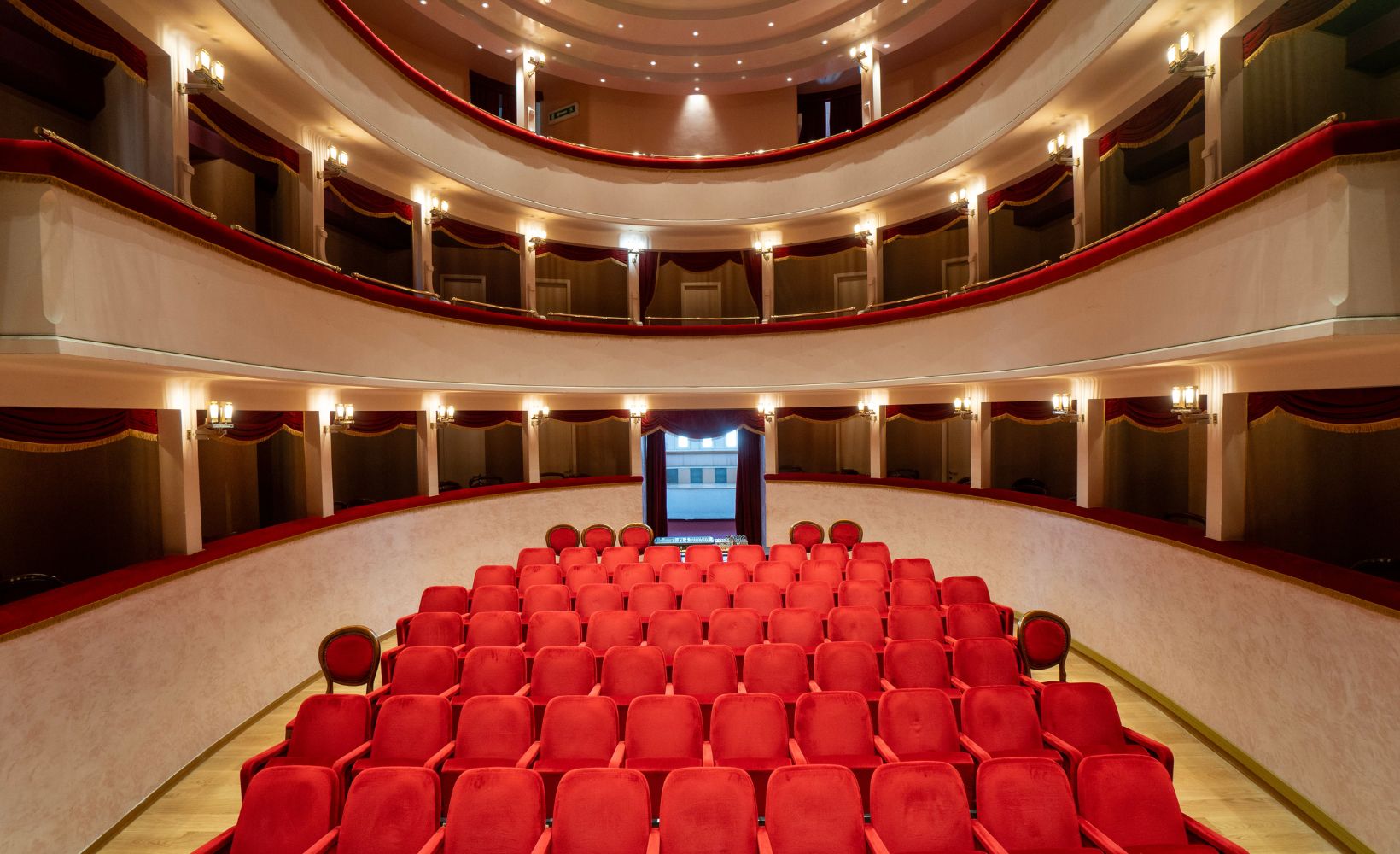 La sala, accogliente e intima, offre un’esperienza unica grazie alla straordinaria posizione che consente, dal palco, di ammirare il mare Adriatico. Questo panorama, che si estende fino all’orizzonte, aggiunge al fascino scenico un elemento naturale mozzafiato, particolarmente suggestivo di giorno. Questa peculiarità rende il teatro non solo un luogo di cultura ma anche un’attrazione turistica di grande richiamo.