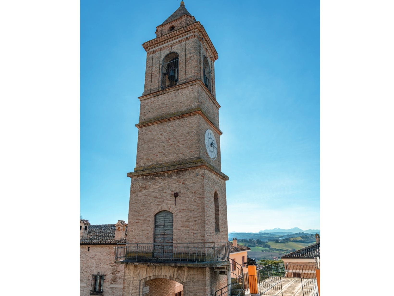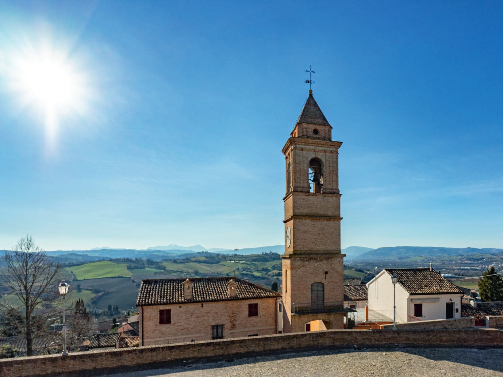 Da questa piazza, dominata dalla torre campanile, si gode un’ampia e magnifica visuale su tutta la valle del Metauro fino alla fascia costiera.